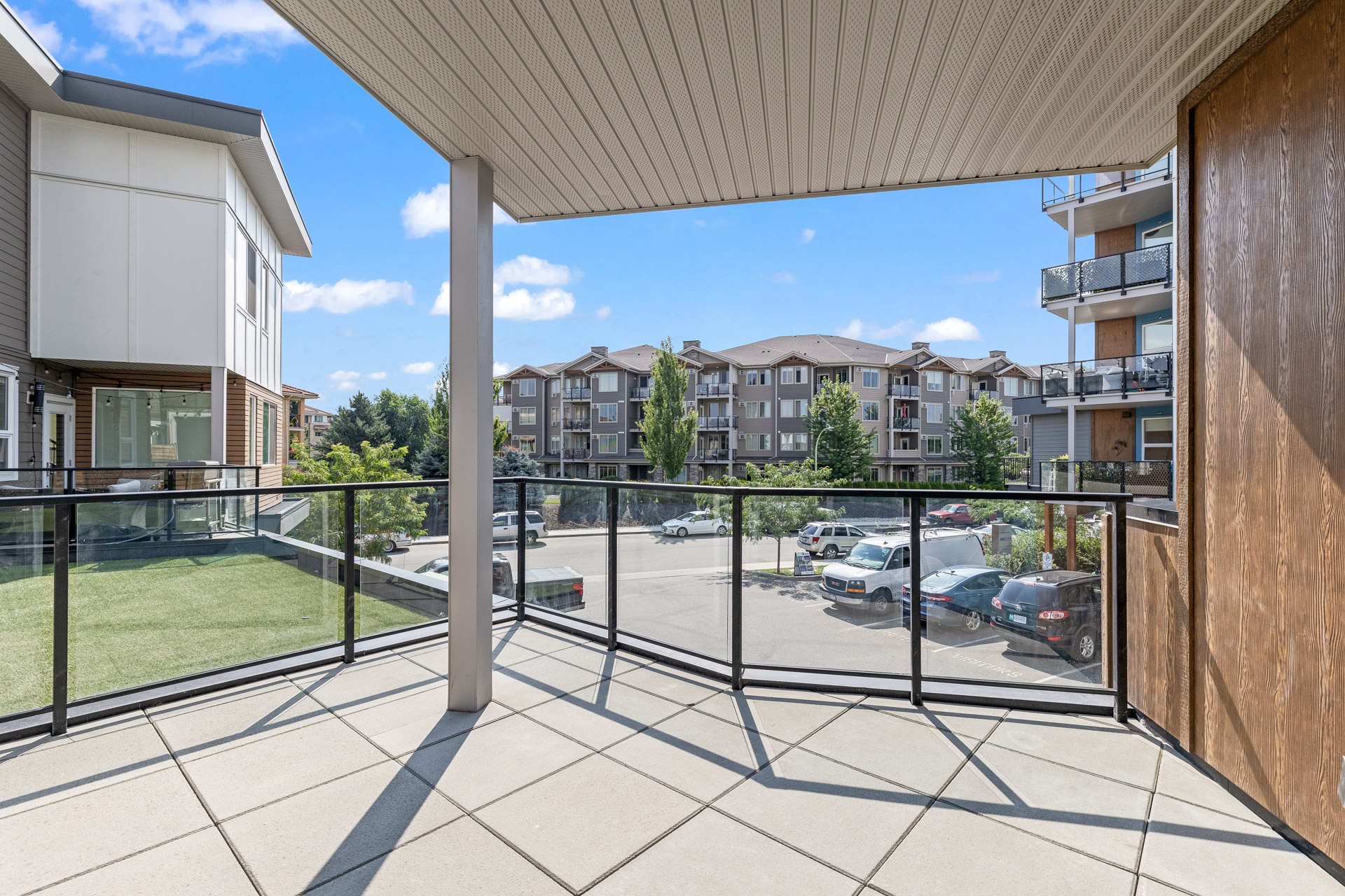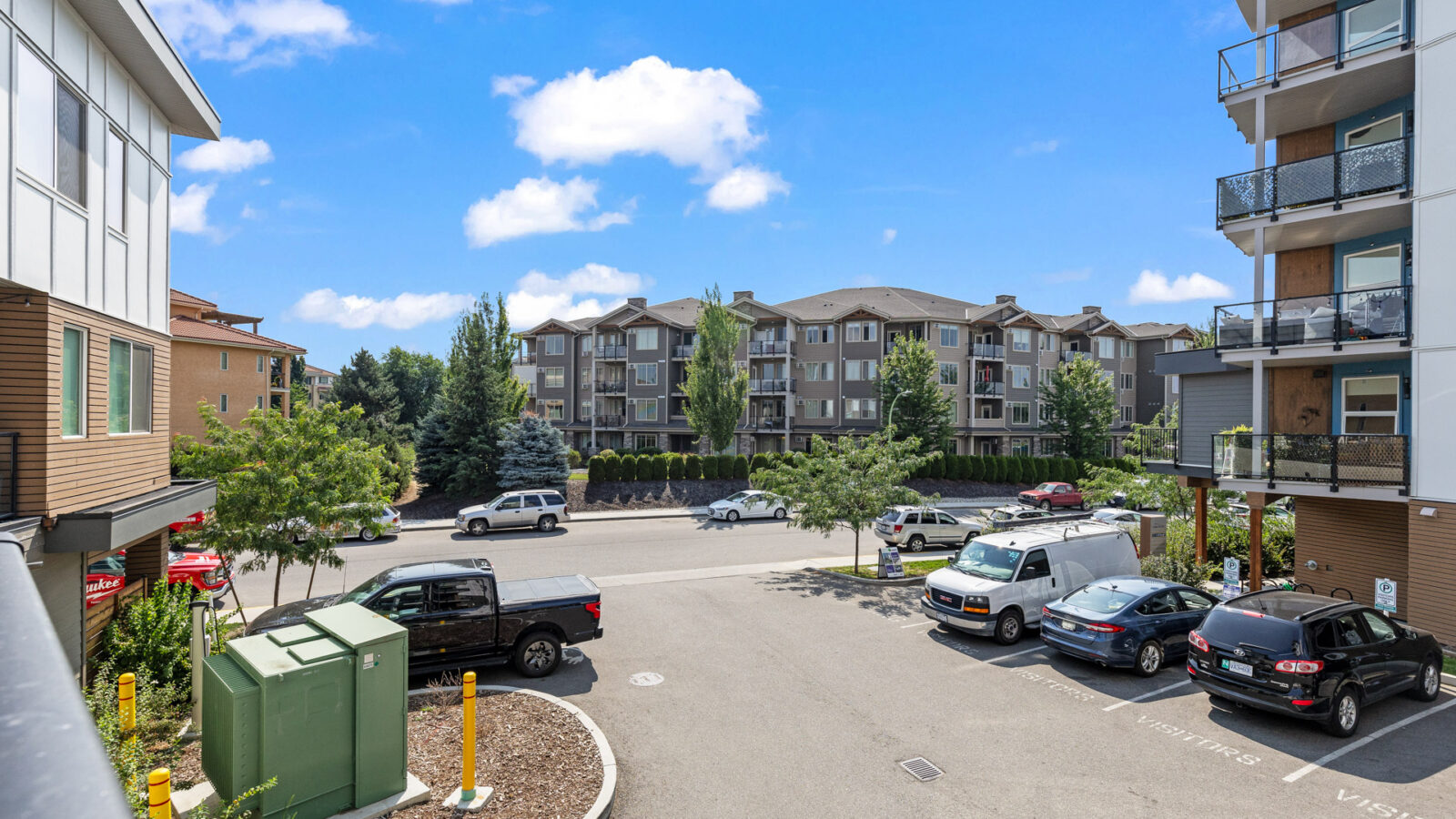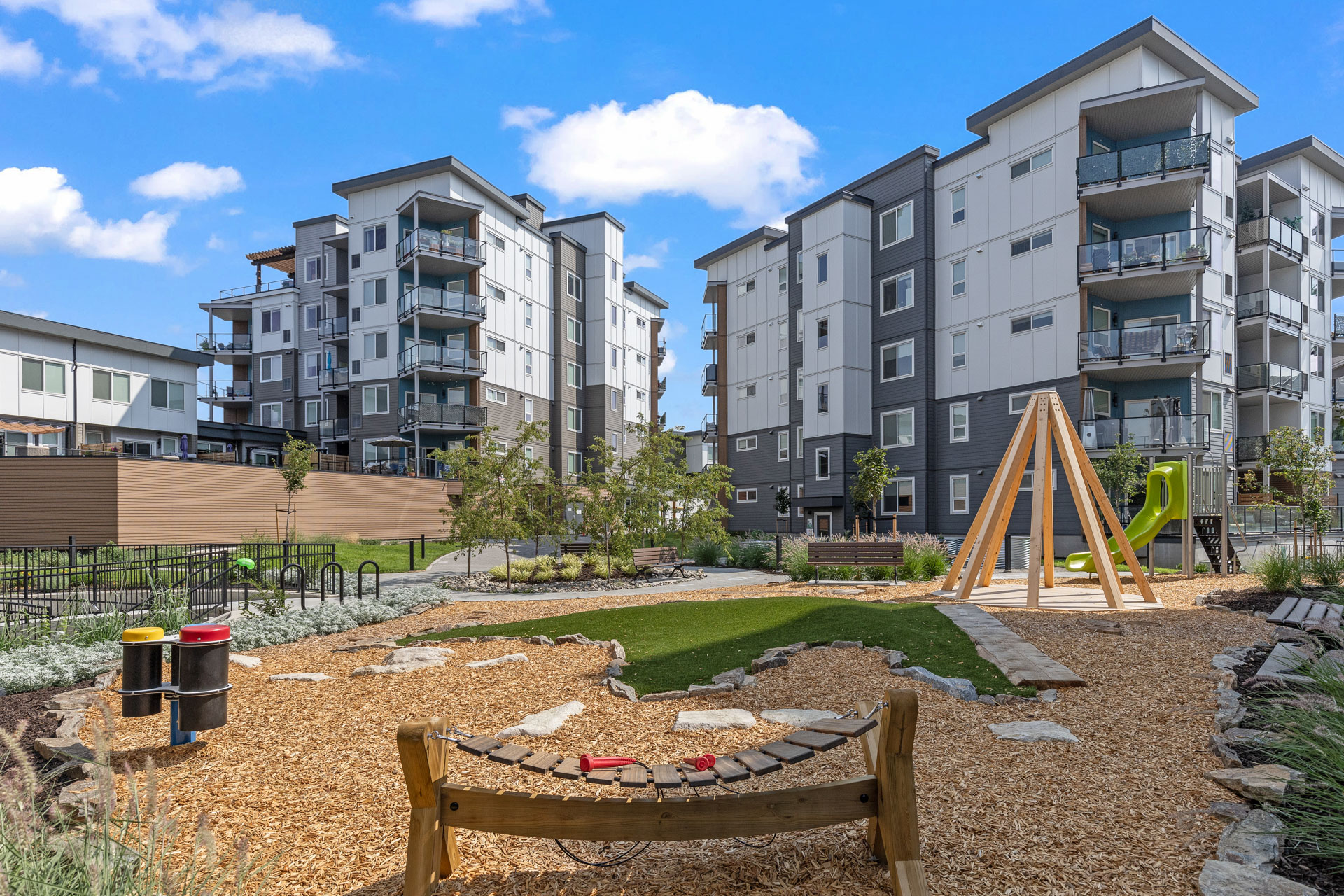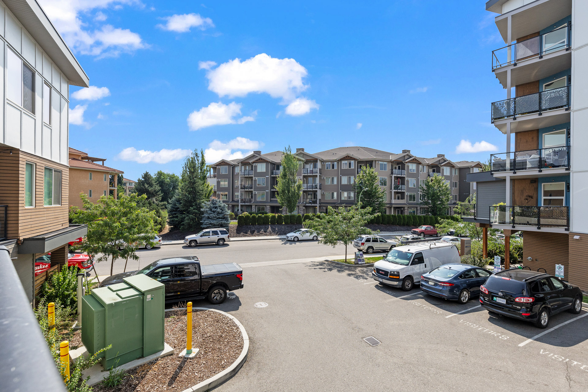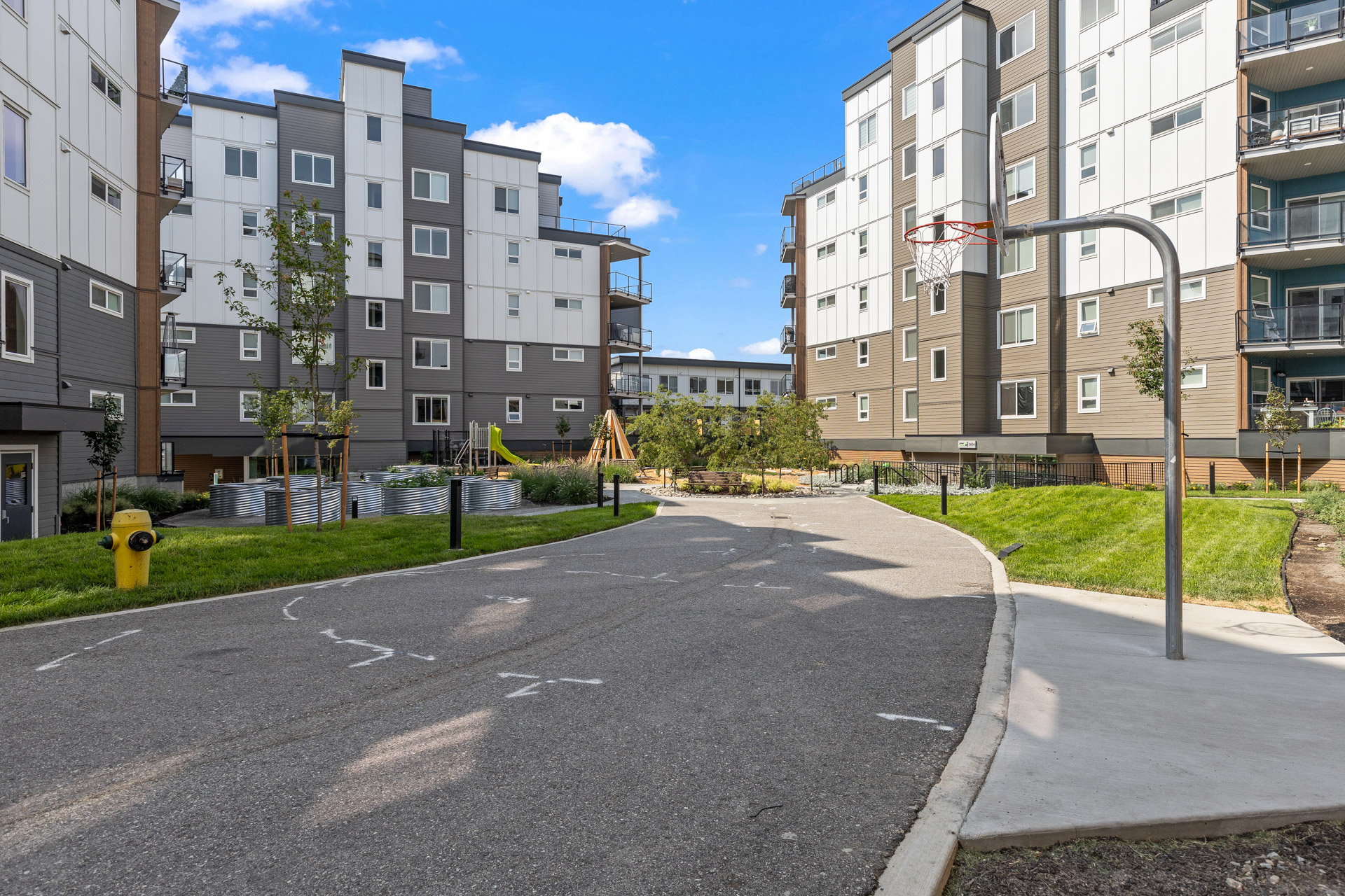 Nestled in Kelowna’s Lower Mission, just minutes to the lake, this 2 bedroom, 2 bathroom contemporary condo is in close proximity to top-rated schools, shopping centers, dining options and recreational facilities. Green Square Vert offers spacious living with high ceilings and well-appointed rooms. Upon entering you will notice the open-concept kitchen, equipped with top-tier Maytag appliances and a sizable island with seating for four, perfect for casual meals or entertaining guests. Rich wide-plank flooring combined with elegant lighting, creates an open and airy atmosphere. A key feature of this condo is the expansive east-facing patio, ideal for enjoying morning coffee or unwinding in the evenings, complete with a gas hookup for outdoor cooking. Included are a Whirlpool washer and dryer, a conveniently located storage locker near the unit, and two secure parking spots in the garage, along with bike storage. Residents can enjoy an array of amenities within the building, such as a fully-equipped fitness center, landscaped gardens with a children’s play area and basketball net, as well as a rooftop patio perfect for admiring city views. Pet owners will find convenience in the dedicated dog wash station and the pet-friendly policy without size restrictions.
