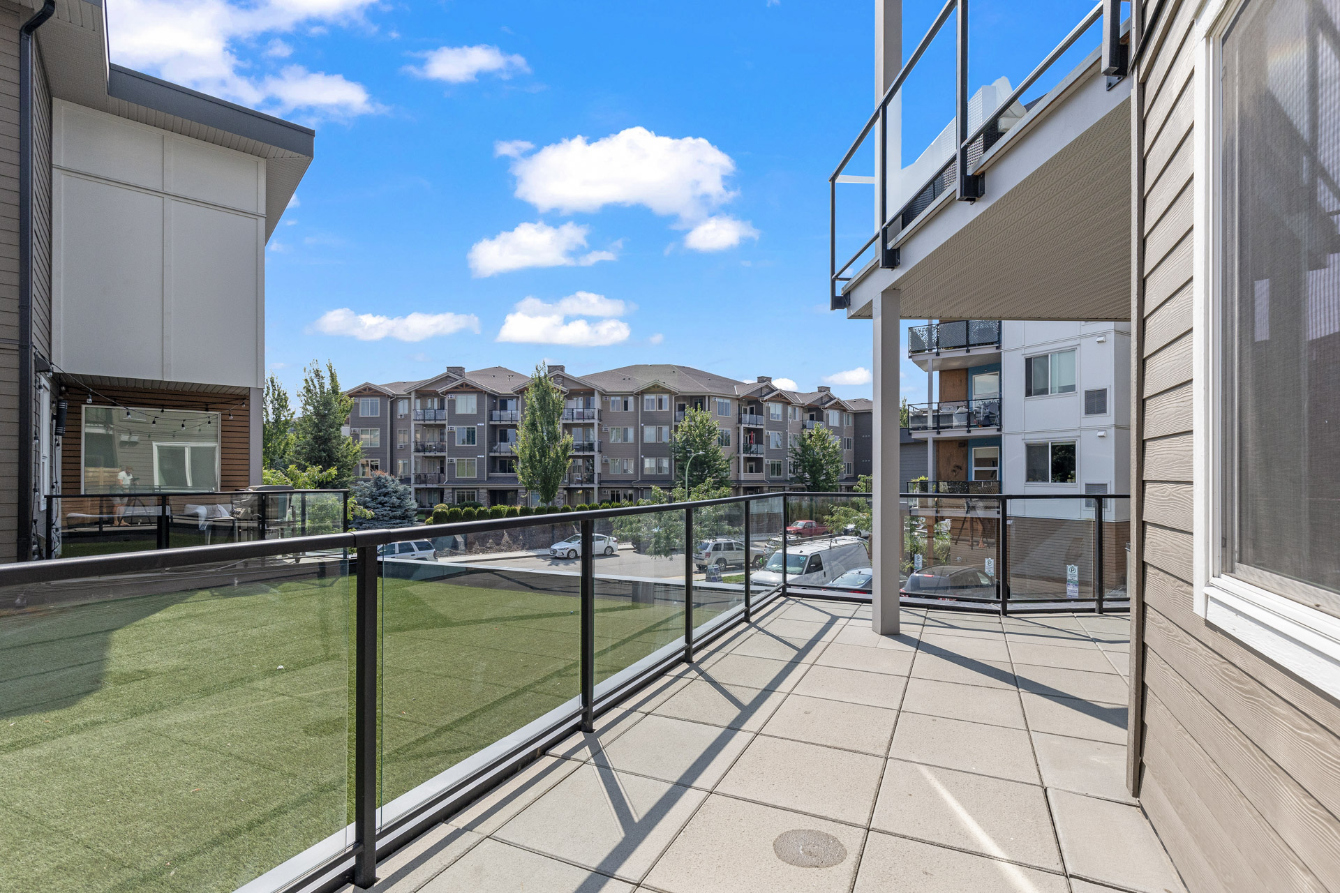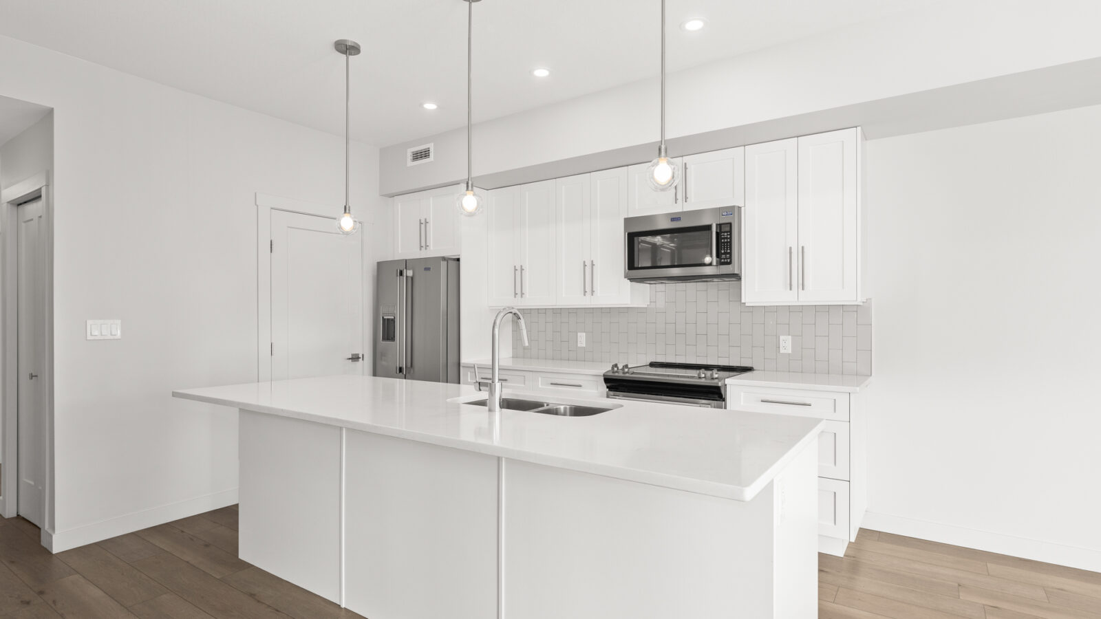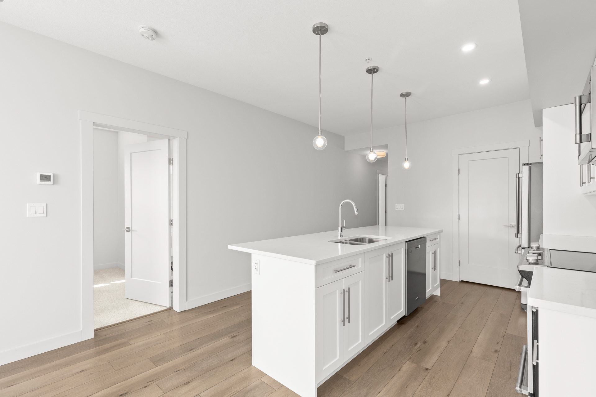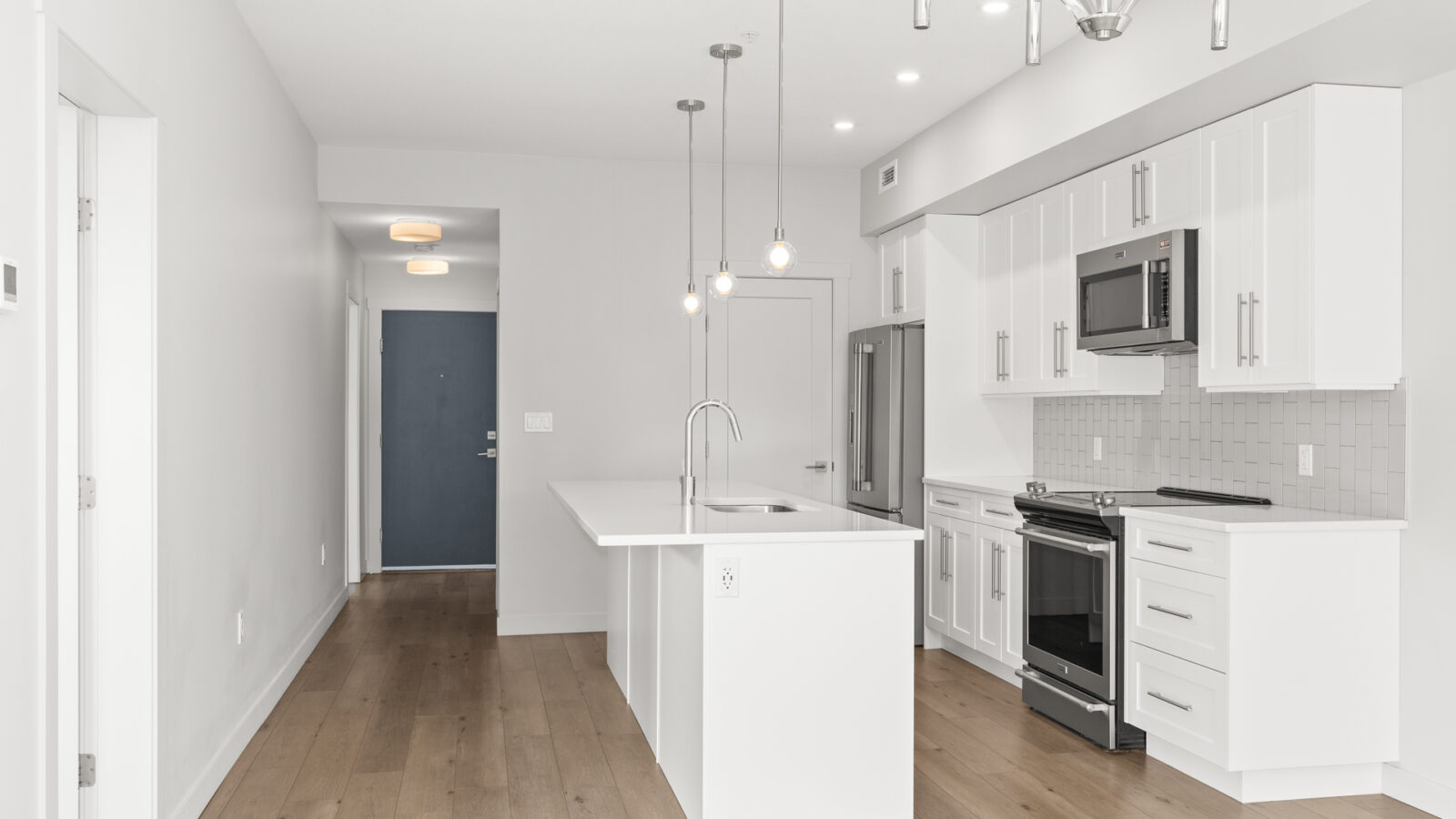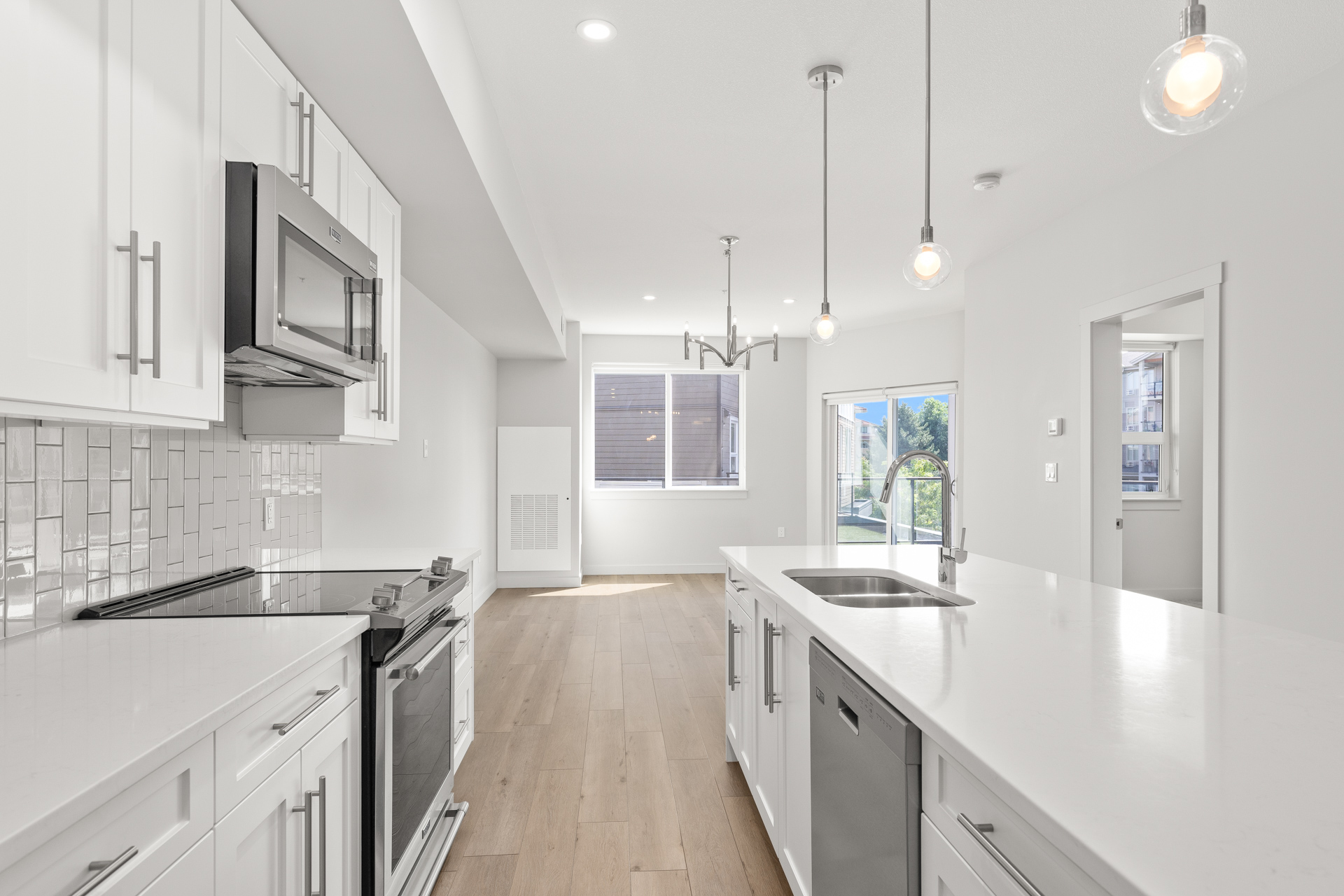 Nestled in Kelowna’s Lower Mission, just minutes to the lake, this 2 bedroom, 2 bathroom contemporary condo is in close proximity to top-rated schools, shopping centers, dining options and recreational facilities. Green Square Vert offers spacious living with high ceilings and well-appointed rooms. Upon entering you will notice the open-concept kitchen, equipped with top-tier Maytag appliances and a sizable island with seating for four, perfect for casual meals or entertaining guests. Rich wide-plank flooring combined with elegant lighting, creates an open and airy atmosphere. A key feature of this condo is the expansive east-facing patio, ideal for enjoying morning coffee or unwinding in the evenings, complete with a gas hookup for outdoor cooking. Included are a Whirlpool washer and dryer, a conveniently located storage locker near the unit, and two secure parking spots in the garage, along with bike storage. Residents can enjoy an array of amenities within the building, such as a fully-equipped fitness center, landscaped gardens with a children’s play area and basketball net, as well as a rooftop patio perfect for admiring city views. Pet owners will find convenience in the dedicated dog wash station and the pet-friendly policy without size restrictions.