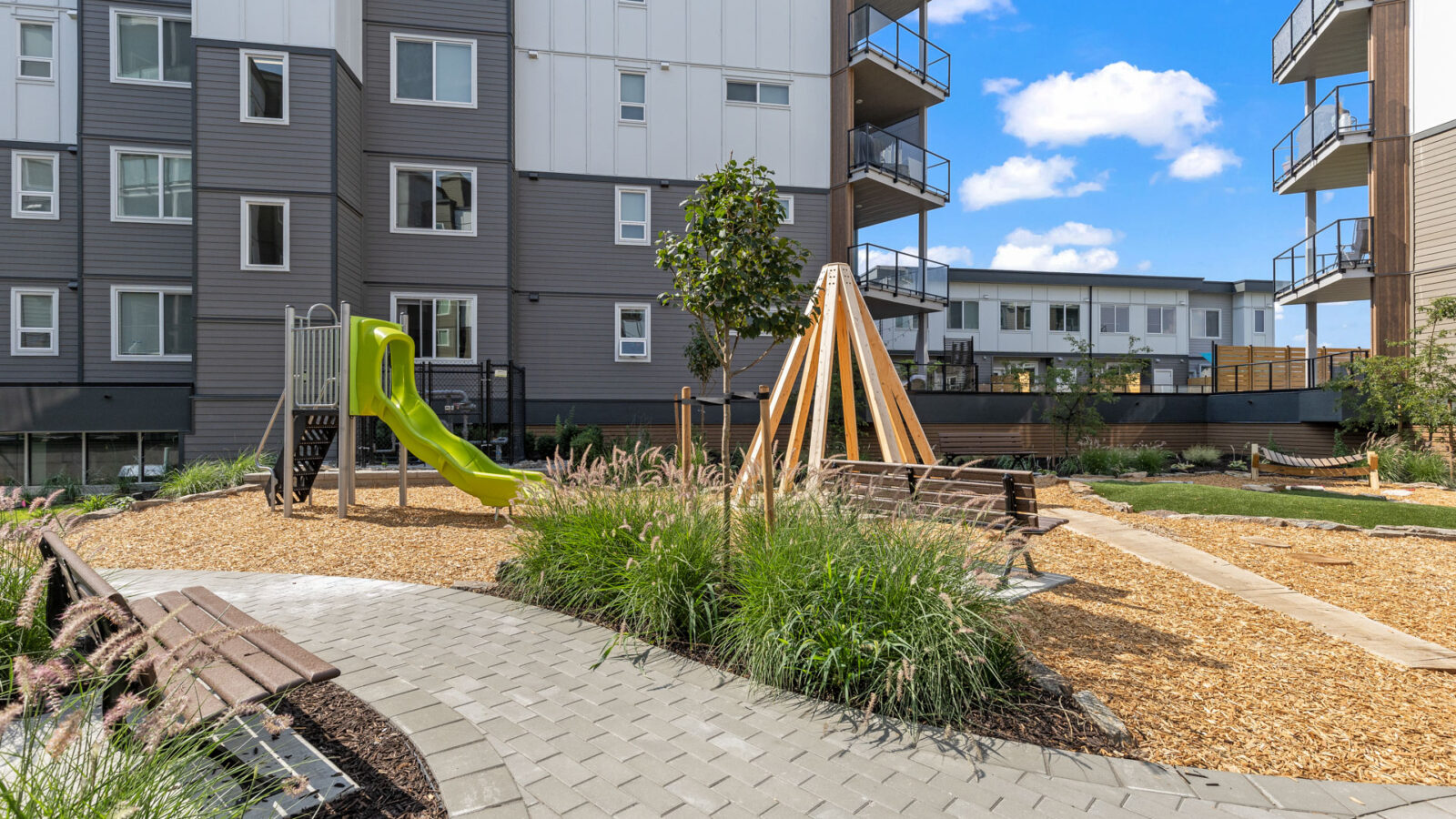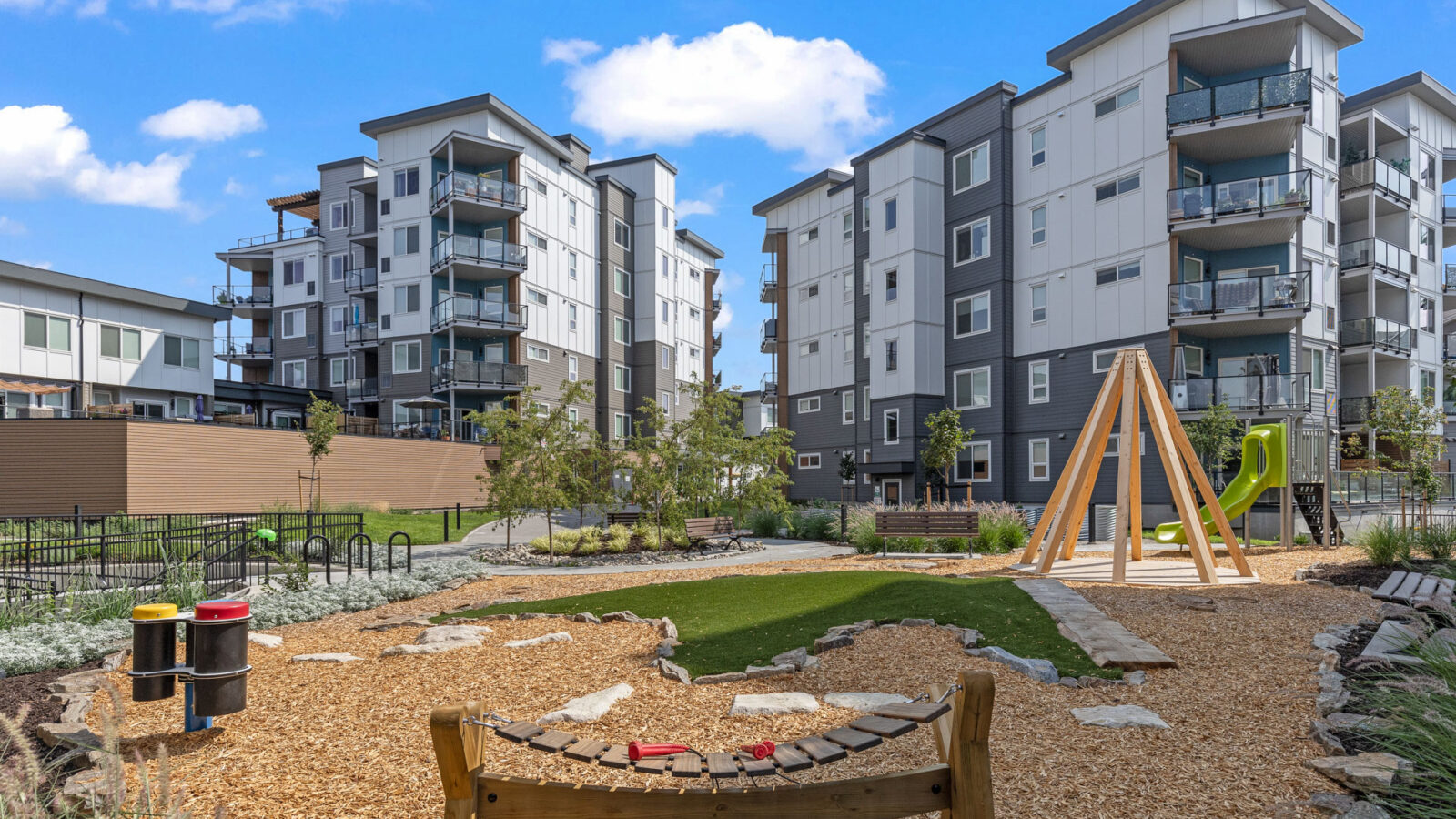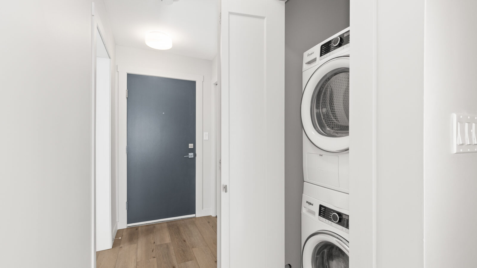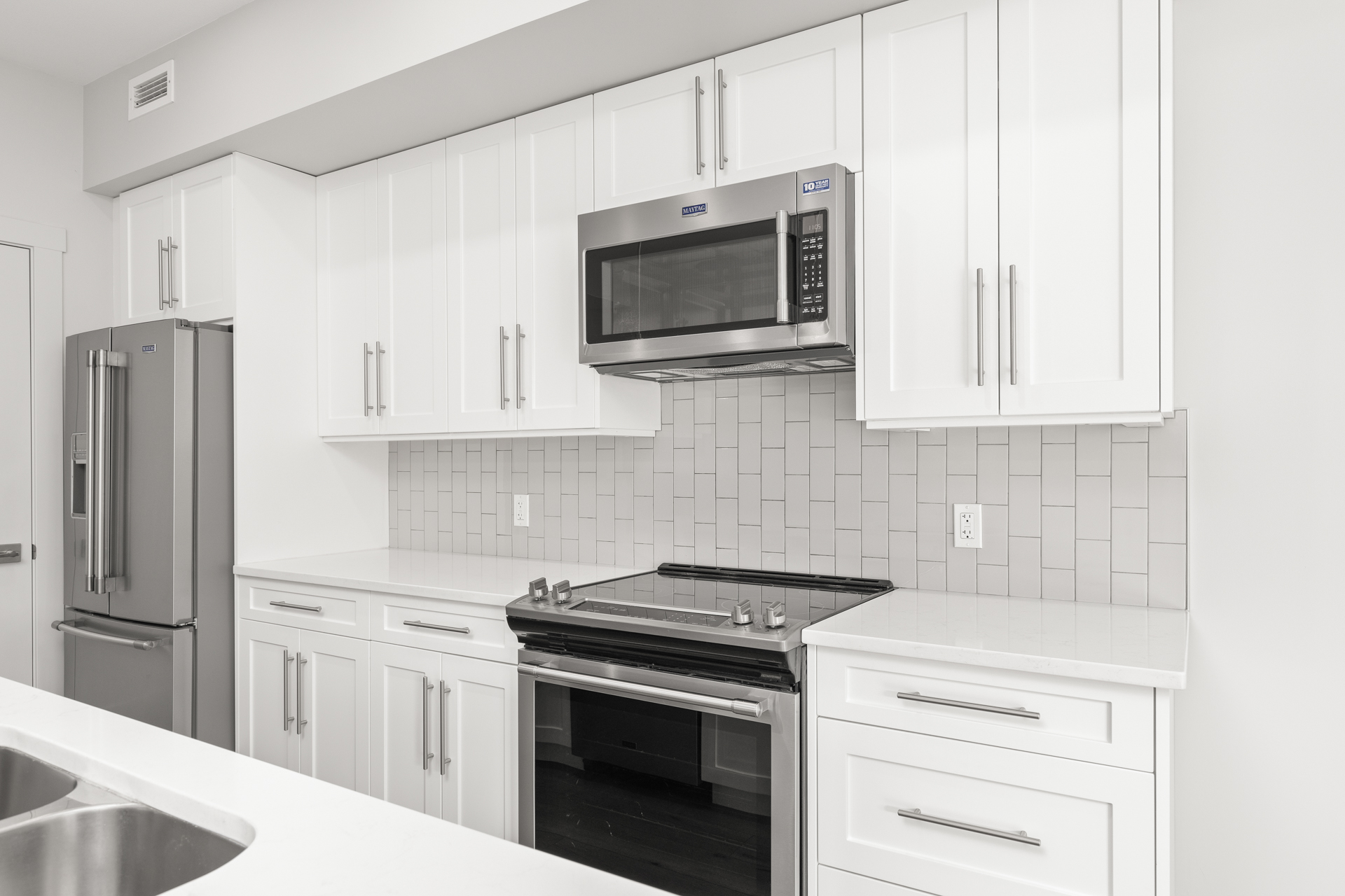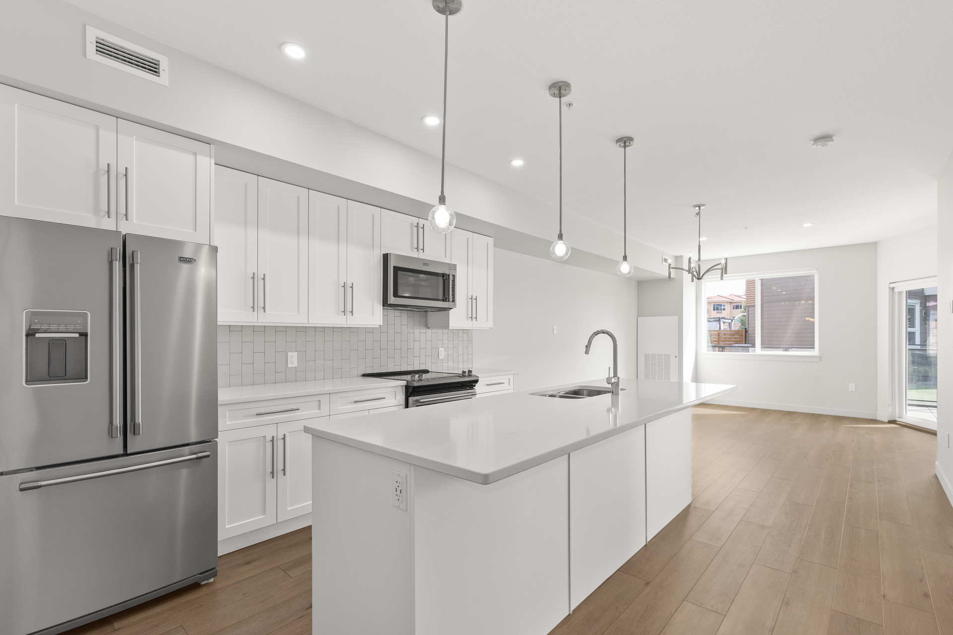 Nestled in Kelowna’s Lower Mission, just minutes to the lake, this 2 bedroom, 2 bathroom contemporary condo is in close proximity to top-rated schools, shopping centers, dining options and recreational facilities. Green Square Vert offers spacious living with high ceilings and well-appointed rooms. Upon entering you will notice the open-concept kitchen, equipped with top-tier Maytag appliances and a sizable island with seating for four, perfect for casual meals or entertaining guests. Rich wide-plank flooring combined with elegant lighting, creates an open and airy atmosphere. A key feature of this condo is the expansive east-facing patio, ideal for enjoying morning coffee or unwinding in the evenings, complete with a gas hookup for outdoor cooking. Included are a Whirlpool washer and dryer, a conveniently located storage locker near the unit, and two secure parking spots in the garage, along with bike storage. Residents can enjoy an array of amenities within the building, such as a fully-equipped fitness center, landscaped gardens with a children’s play area and basketball net, as well as a rooftop patio perfect for admiring city views. Pet owners will find convenience in the dedicated dog wash station and the pet-friendly policy without size restrictions.