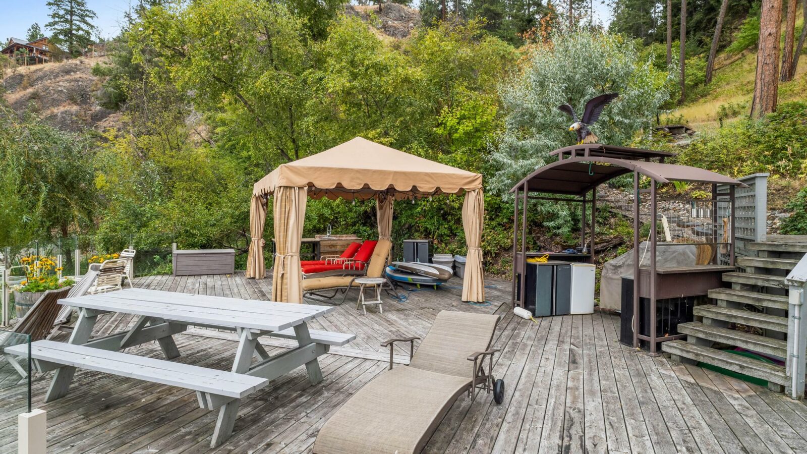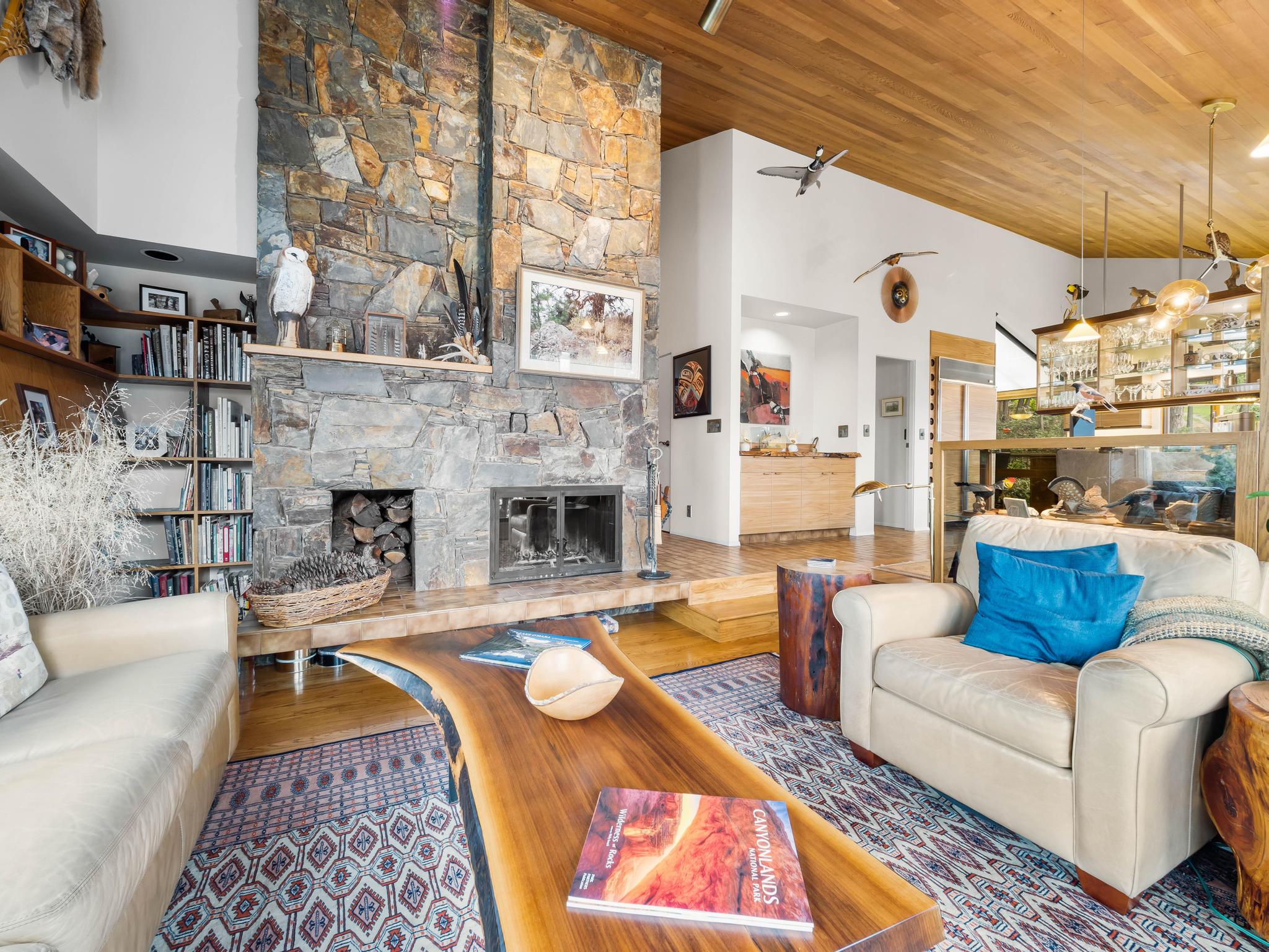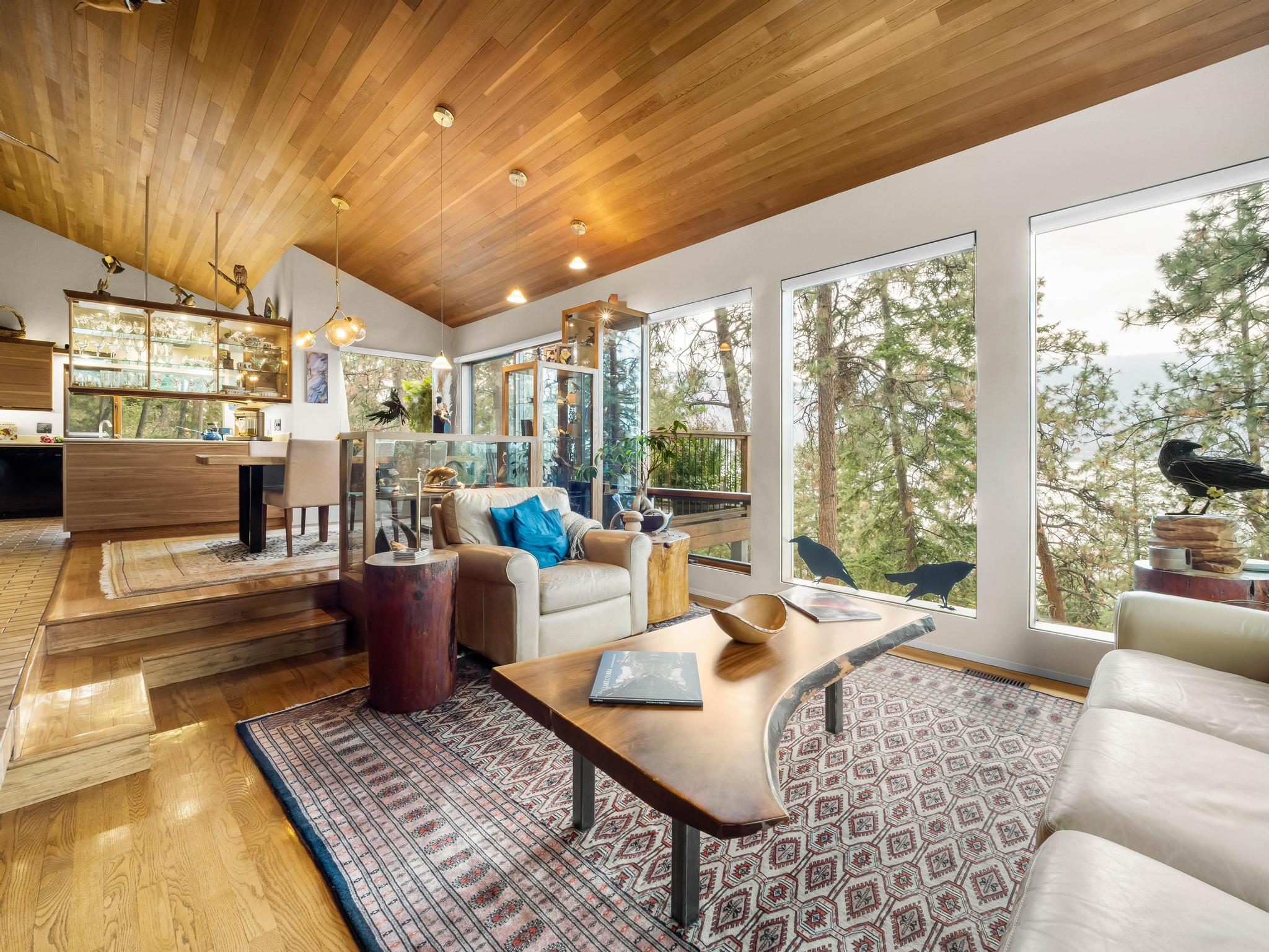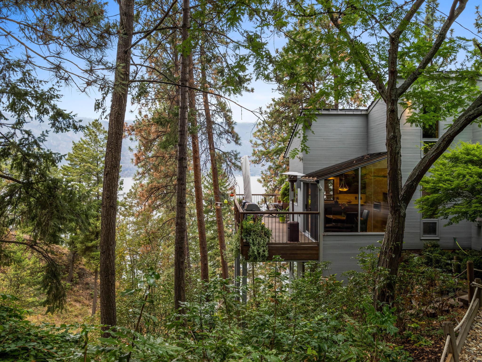 A rare offering! This unique and private 5-acre estate in coveted McKinley Landing, lovingly cared for by its original owners, is now on the market for the first time. The property features an architecturally stunning 3-bed, 3-bath home designed by Dan Pretty with 2,500+ sq. ft. of living space. This sanctuary combines serene country living with easy access to city amenities. The extension of North Clifton Road into McKinley means this property will soon be a quick car ride from downtown. Enjoy a private beachfront with dock, deck space, outdoor kitchen, and covered sleeping area perfect for Okanagan summers. The beach can be accessed by a footpath along the stream or by a cart path. Active farm status keeps property taxes low and allows for income from an established apiary, raspberry, and tree farm. An extensive irrigation system supports agricultural use, landscaping, and fire prevention. This property is a bird-watcher’s paradise with mature trees and a natural stream surrounded by lush greenery, making the land a haven for wildlife. The home features vaulted ceilings, natural wood, a stone fireplace upstairs, and an antique brick fireplace in the family room, a generous master suite, loft study with rolling ladder, and incredible views from every window. There is an upper deck adjoining the kitchen and a lower deck with a hot tub off the master suite. There is a heated workshop, storage sheds, a trailer pad, and ample parking. Move in or plan your new dream home!