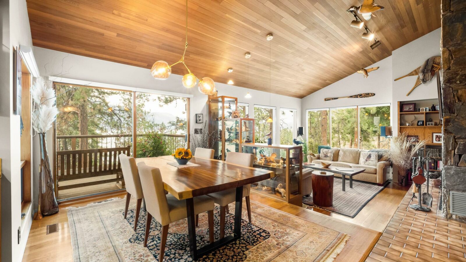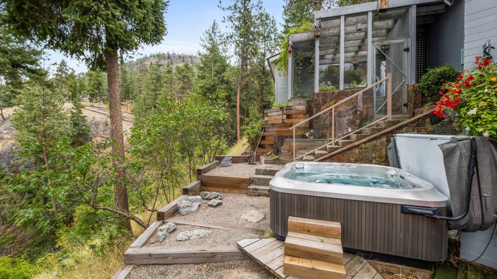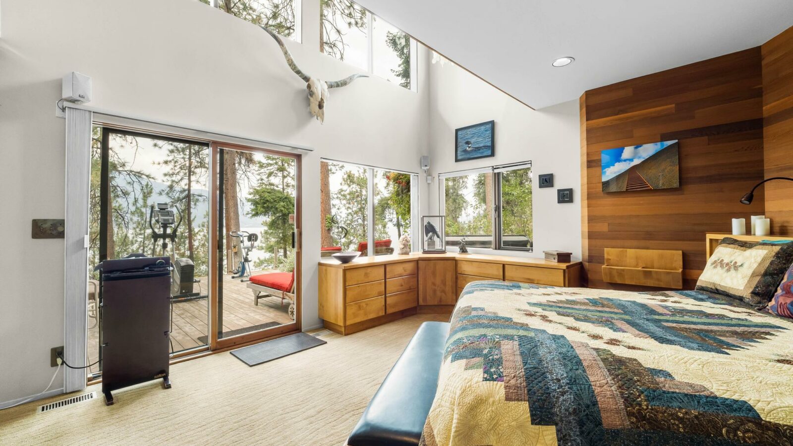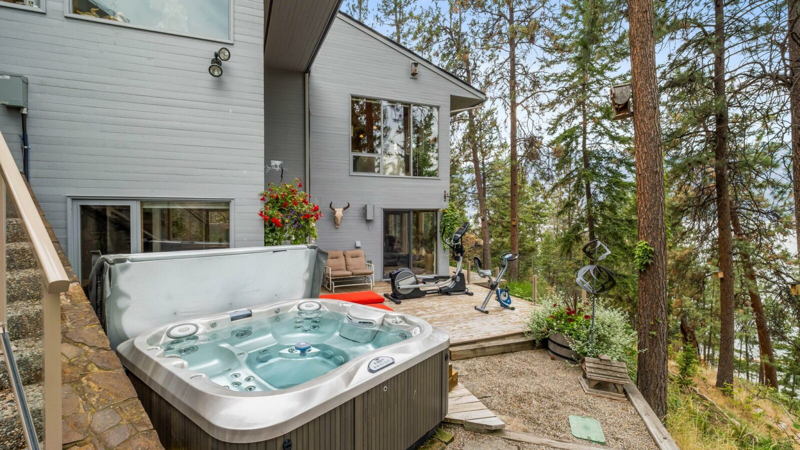 A rare offering! This unique and private 5-acre estate in coveted McKinley Landing, lovingly cared for by its original owners, is now on the market for the first time. The property features an architecturally stunning 3-bed, 3-bath home designed by Dan Pretty with 2,500+ sq. ft. of living space. This sanctuary combines serene country living with easy access to city amenities. The extension of North Clifton Road into McKinley means this property will soon be a quick car ride from downtown. Enjoy a private beachfront with dock, deck space, outdoor kitchen, and covered sleeping area perfect for Okanagan summers. The beach can be accessed by a footpath along the stream or by a cart path. Active farm status keeps property taxes low and allows for income from an established apiary, raspberry, and tree farm. An extensive irrigation system supports agricultural use, landscaping, and fire prevention. This property is a bird-watcher’s paradise with mature trees and a natural stream surrounded by lush greenery, making the land a haven for wildlife. The home features vaulted ceilings, natural wood, a stone fireplace upstairs, and an antique brick fireplace in the family room, a generous master suite, loft study with rolling ladder, and incredible views from every window. There is an upper deck adjoining the kitchen and a lower deck with a hot tub off the master suite. There is a heated workshop, storage sheds, a trailer pad, and ample parking. Move in or plan your new dream home!