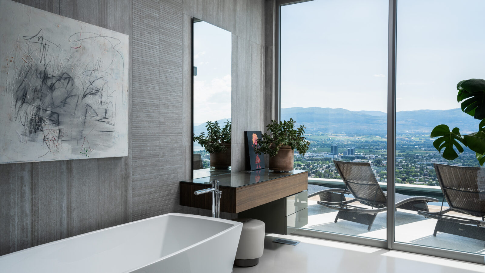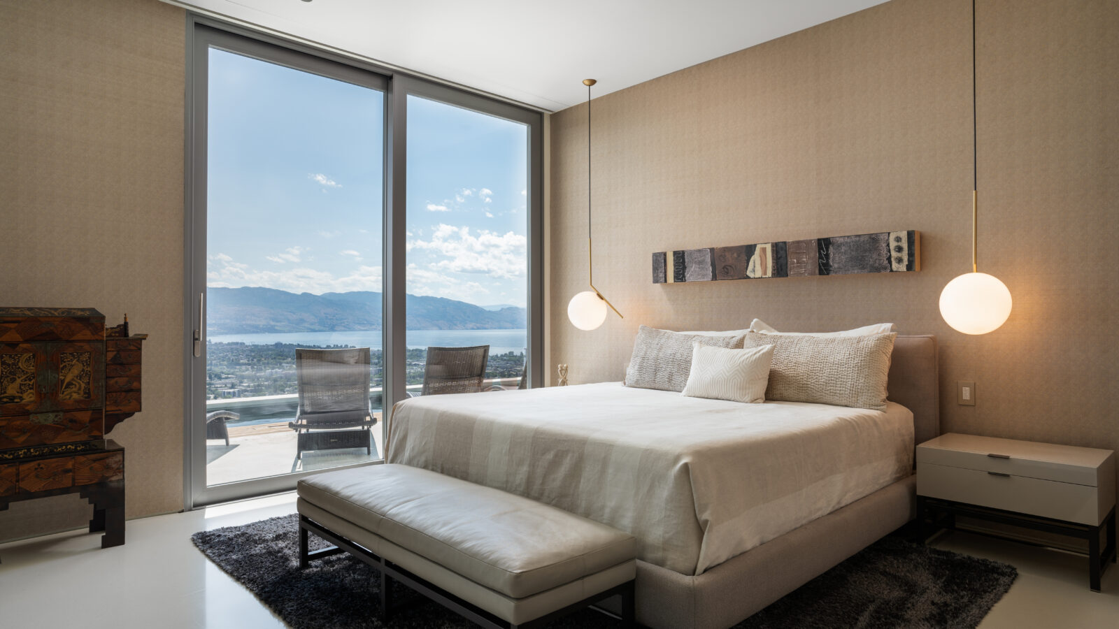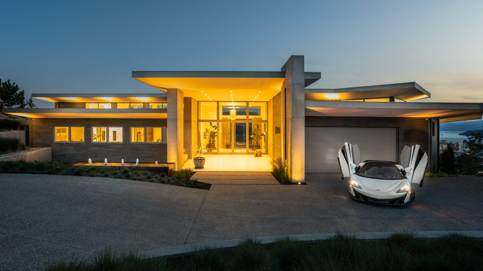 Welcome to this architectural home with world class attention to detail, in Kelowna’s exclusive enclave of Highpointe. The grand entryway greets with lush landscaping and corten steel water feature to enhance the luxurious Italian tile and polished concrete of the foyer. Immediately you are captivated by breathtaking views of the city and lake through the floor-to-ceiling windows. The main living space contains the great room which opens onto the kitchen, finished with custom Italian cabinetry and integrated Wolf & Sub-Zero appliances. The expansive patio & pool deck stretches the length of the home, providing limitless outdoor living. The primary suite is designed to take full advantage of the views, and flows seamlessly to the pool deck. Finishing this level are two more stunningly appointed bedrooms, and a large flex room perfect for a games room, bar/lounge, or gym – also with access to the pool deck. Downstairs is a stylish lounge with wet bar perfect for enjoying music and movies, plus an additional bedroom, bathroom, kitchenette, and recreation area. The entire home features radiant heated polished concrete flooring. The garage features a car elevator, which accesses the 2,690sqft finished lower level garage space, which could be customized to meet virtually any use, complete with independent heating and air filtration. This home was constructed mainly with concrete and steel, Incorporating extensive steel beams and cantilevered spaces. This masterpiece stands apart.