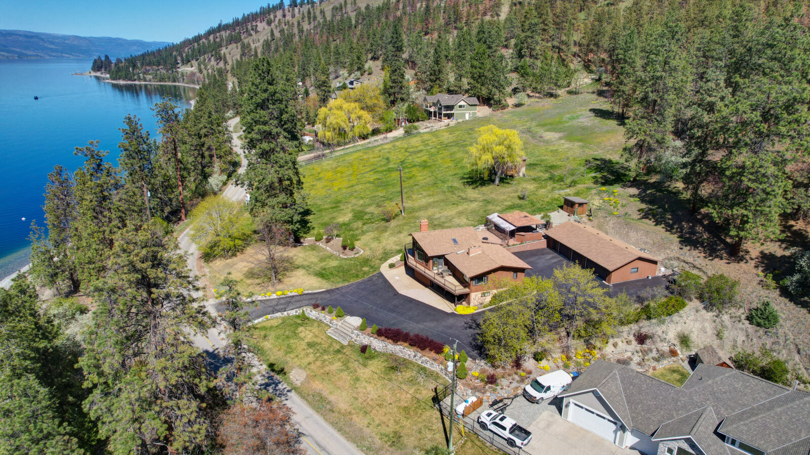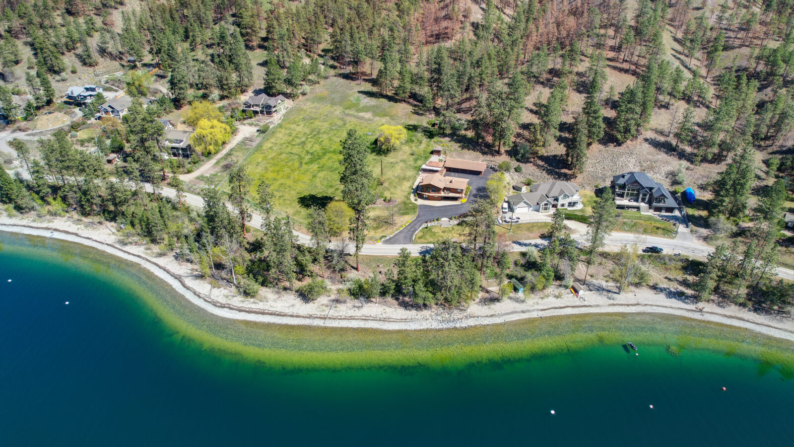 Semi-lakeshore estate with 2 titles, encompassing 9.07 acres (5.1+3.97) of land zoned RR2 and NOT in the ALR. 9983 offers 3.97 acres of land with a beautiful 4 bedroom, 3 bathroom home. Vaulted wood ceilings, huge windows to capture the Okanagan Lake views, and heated tile floors on the main are all features that make this a great semi-lakeshore home. There is a 4 car garage for the cars and the toys, and plenty of excess room for additional parking. There is an outdoor kitchen area w/ concrete patio and a wrap around deck space. Spend 15 seconds walking across the road to enjoy the beautiful beach. Lot 28 is a 5.1 acre piece of land that has subdivision potential for a 2 lot subdivision (buyer to investigate). The land was historically successful with plums, but has been recently cleared as of May 2023. The properties are currently fed with the lake intake water system associated with 9983. Lot 28 may be sold in isolation, but the 9983 property (property w/ home) must be sold in conjunction with lot 28. Outstanding opportunity to acquire 2 titles with plenty of upside potential that total over 9 acres in the prestigious Okanagan Centre area of Lake Country. 2 titles gives building flexibility for multiple primary homes that would make for an outstanding family compound. Boat launch, cafe, and wineries all just a quick drive away!