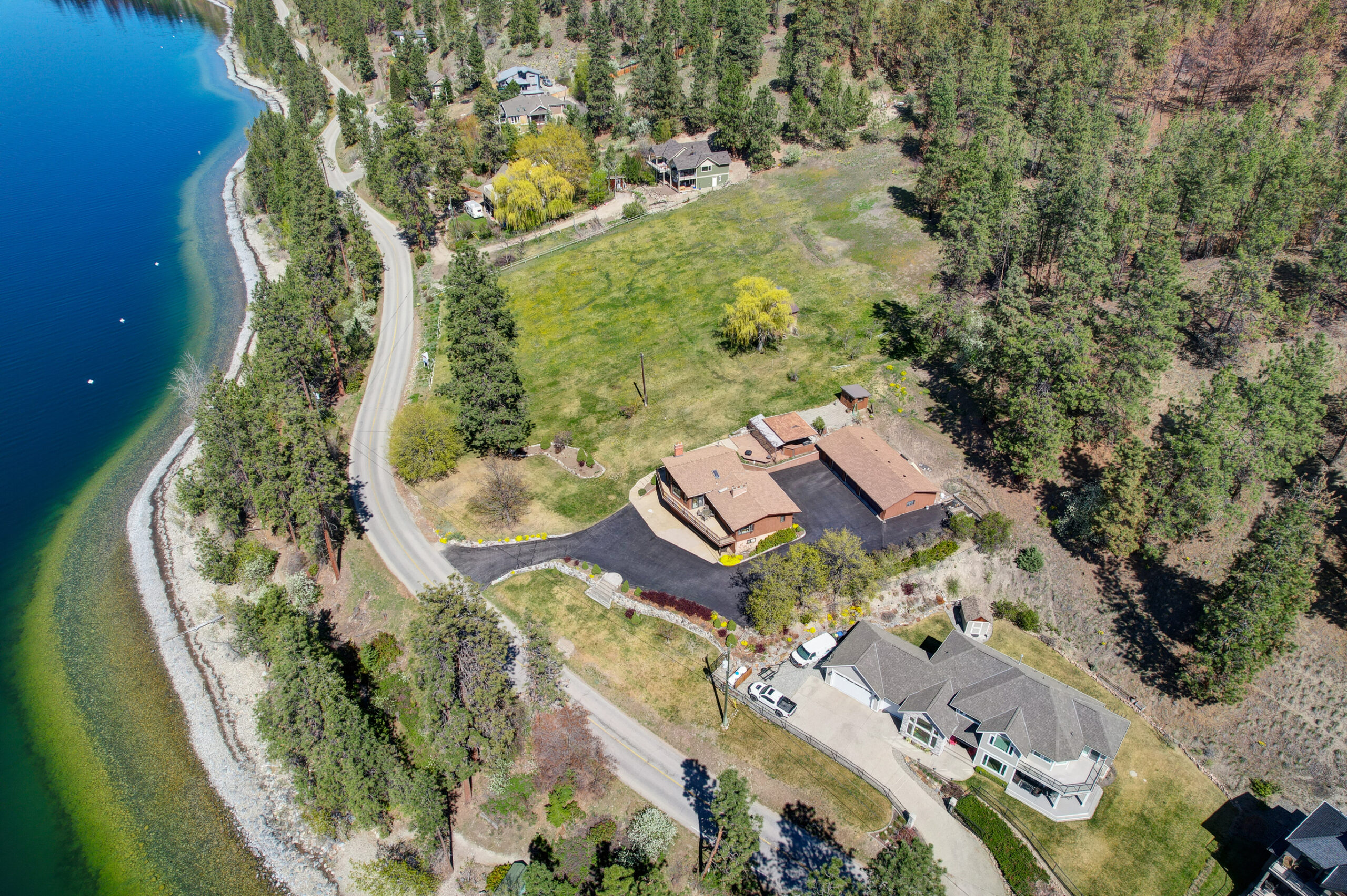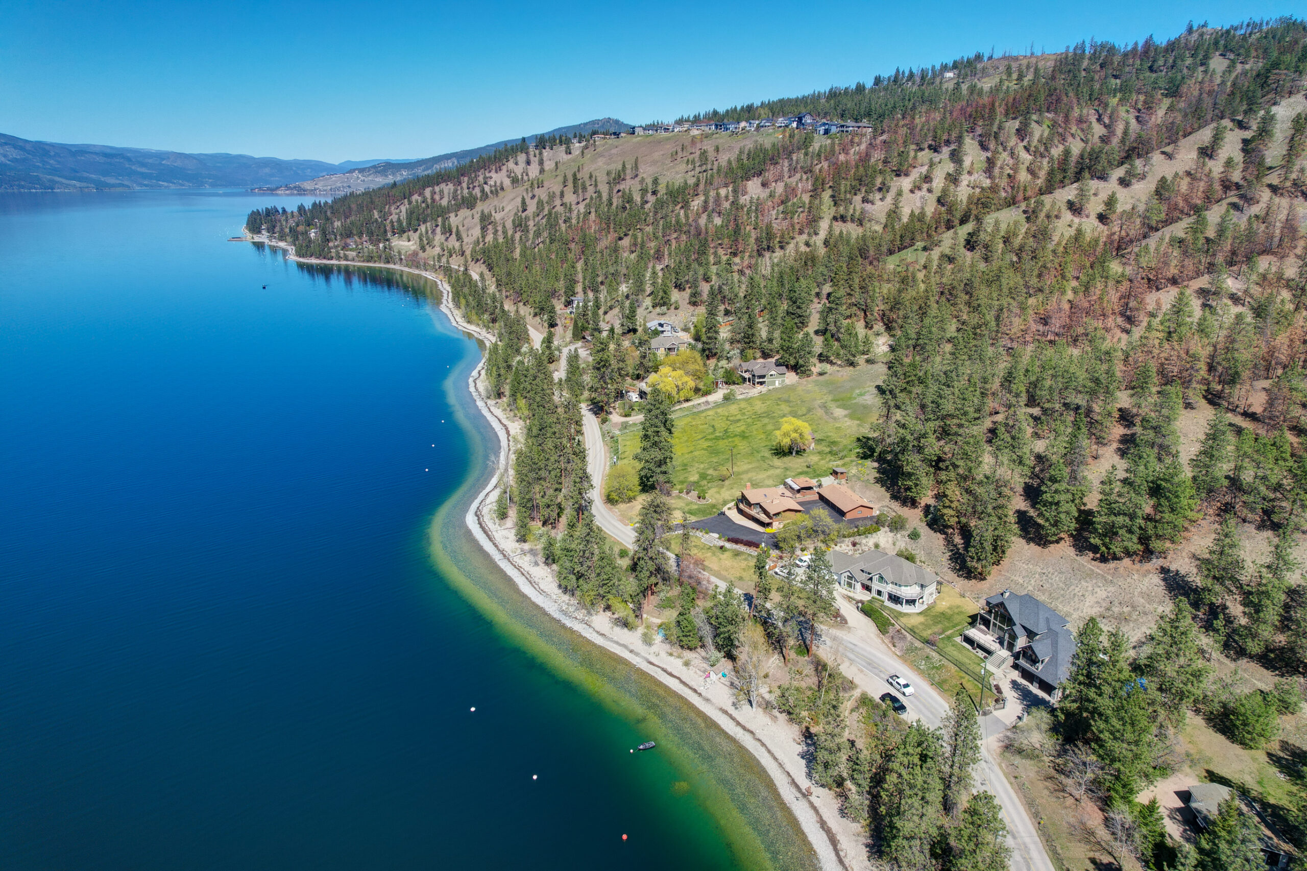 Semi-lakeshore estate with 2 titles, encompassing 9.07 acres (5.1+3.97) of land zoned RR2 and NOT in the ALR. 9983 offers 3.97 acres of land with a beautiful 4 bedroom, 3 bathroom home. Vaulted wood ceilings, huge windows to capture the Okanagan Lake views, and heated tile floors on the main are all features that make this a great semi-lakeshore home. There is a 4 car garage for the cars and the toys, and plenty of excess room for additional parking. There is an outdoor kitchen area w/ concrete patio and a wrap around deck space. Spend 15 seconds walking across the road to enjoy the beautiful beach. Lot 28 is a 5.1 acre piece of land that has subdivision potential for a 2 lot subdivision (buyer to investigate). The land was historically successful with plums, but has been recently cleared as of May 2023. The properties are currently fed with the lake intake water system associated with 9983. Lot 28 may be sold in isolation, but the 9983 property (property w/ home) must be sold in conjunction with lot 28. Outstanding opportunity to acquire 2 titles with plenty of upside potential that total over 9 acres in the prestigious Okanagan Centre area of Lake Country. 2 titles gives building flexibility for multiple primary homes that would make for an outstanding family compound. Boat launch, cafe, and wineries all just a quick drive away!