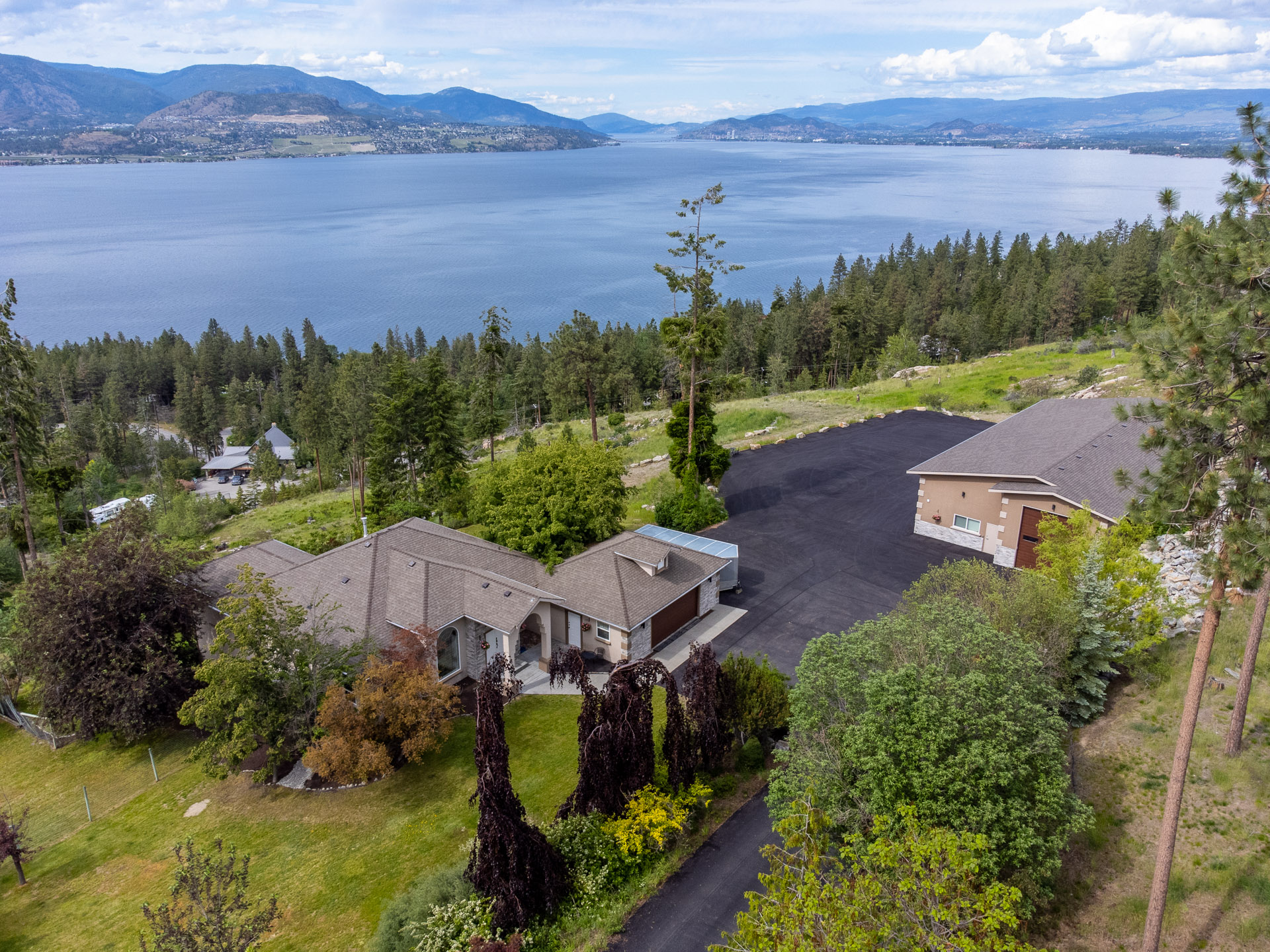 LOCATION! KELOWNA’S UPPER MISSION 5.74Ac PRIVATE ESTATE. PANORAMIC LAKE & CITY VIEWS! VERSATILITY! REVENUE! 3900SF WALK-OUT RANCHER W/AIRBNB SUITE. ALREADY RR1C ZONED. SUBDIVISION POTENTIAL. CARRIAGE HOME & SITE APPROVED. 3200SF SHOP. ENDLESS OPPORTUNITIES. Paved gated estate driveway leads to the 4 bed 4 bath +/-3900SF walkout rancher that has breathtaking views from both levels, 2 fireplaces, Hot tub & a lower walk-out suite that has an Airbnb rental license. There’s also a lakeview 3200SF clear span shop with 4 massive garage doors, washroom, dbl sink, kitchen/bar area, in-floor heat ready, 220V and 30A outlets, + more side RV parking. Lots of parking with over a third of an acre of paved space (Did we mention the Suite & Shop can bring in great rental income?) The UPPER 2.5Ac portion is approved to build a Carriage Home that won’t infringe on the main home’s privacy. The LOWER fully cleared 3.24Ac also has stunning views of Okanagan Lake & multiple flat building areas. The owner invested 15 years & millions of dollars getting the property to this point. Just the cost of even 1 Ac of bare Commercial/Industrial land in Kelowna today ($2.5 – 4M), makes one realize just how much of an opportunity this property really is. Highly unique 5.74acre RR1C zoned property is a once-in-a-lifetime opportunity. Property serviced by municipal water. **Please be courteous & do not drive or walk onto the property without a scheduled appointment.