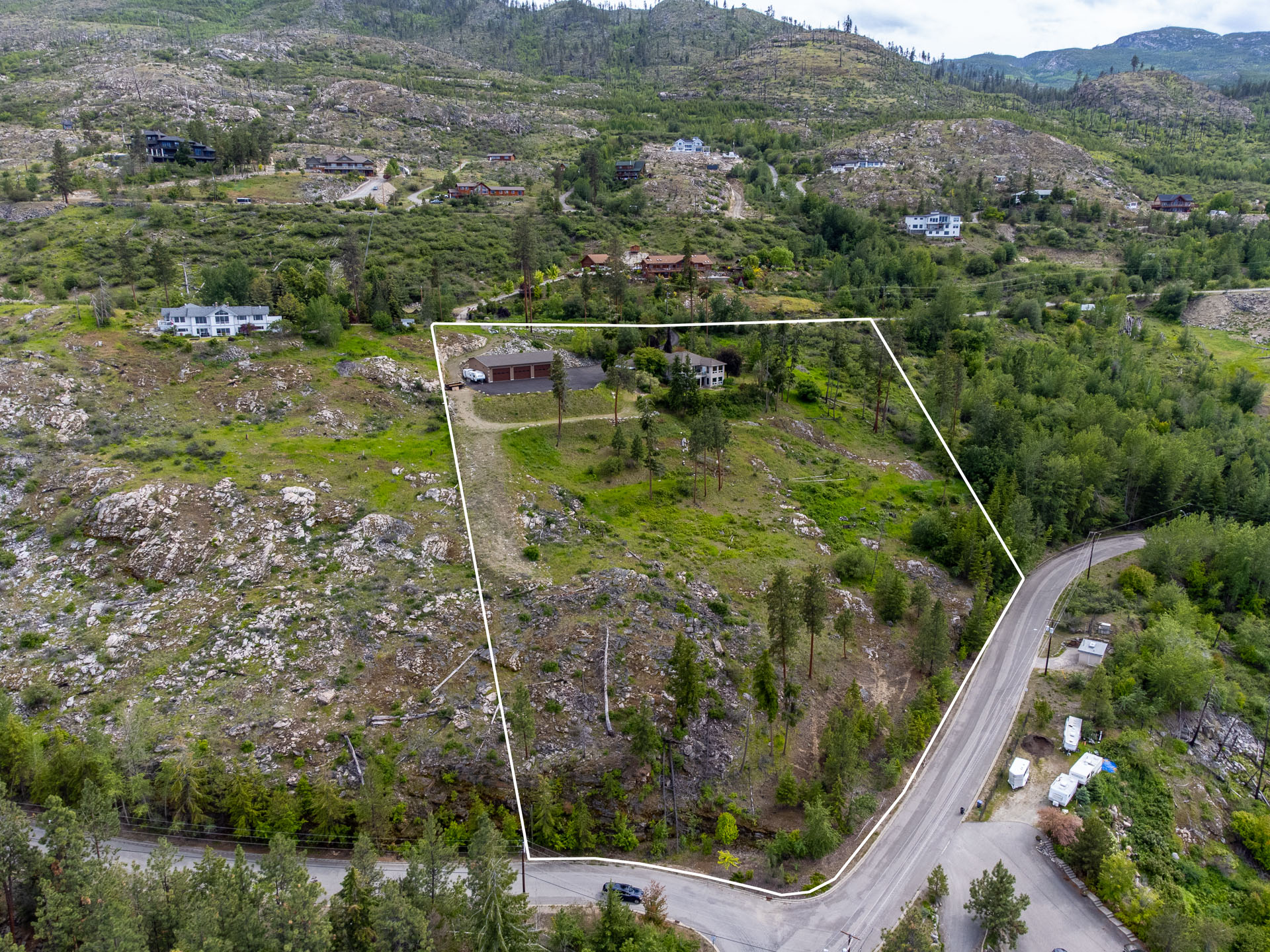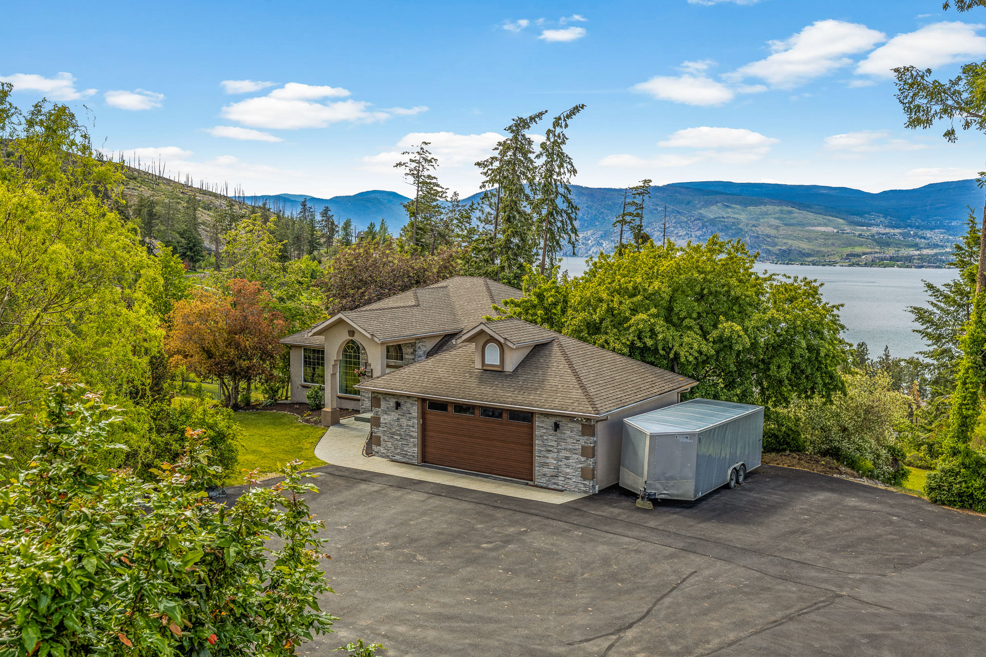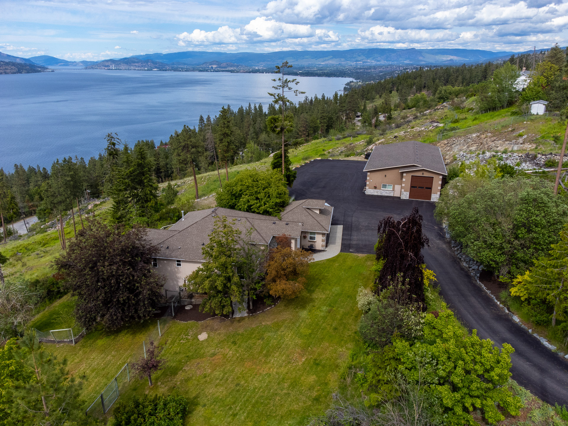 LOCATION! KELOWNA’S UPPER MISSION 5.74Ac PRIVATE ESTATE. PANORAMIC LAKE & CITY VIEWS! VERSATILITY! REVENUE! 3900SF WALK-OUT RANCHER W/AIRBNB SUITE. ALREADY RR1C ZONED. SUBDIVISION POTENTIAL. CARRIAGE HOME & SITE APPROVED. 3200SF SHOP. ENDLESS OPPORTUNITIES. Paved gated estate driveway leads to the 4 bed 4 bath +/-3900SF walkout rancher that has breathtaking views from both levels, 2 fireplaces, Hot tub & a lower walk-out suite that has an Airbnb rental license. There’s also a lakeview 3200SF clear span shop with 4 massive garage doors, washroom, dbl sink, kitchen/bar area, in-floor heat ready, 220V and 30A outlets, + more side RV parking. Lots of parking with over a third of an acre of paved space (Did we mention the Suite & Shop can bring in great rental income?) The UPPER 2.5Ac portion is approved to build a Carriage Home that won’t infringe on the main home’s privacy. The LOWER fully cleared 3.24Ac also has stunning views of Okanagan Lake & multiple flat building areas. The owner invested 15 years & millions of dollars getting the property to this point. Just the cost of even 1 Ac of bare Commercial/Industrial land in Kelowna today ($2.5 – 4M), makes one realize just how much of an opportunity this property really is. Highly unique 5.74acre RR1C zoned property is a once-in-a-lifetime opportunity. Property serviced by municipal water. **Please be courteous & do not drive or walk onto the property without a scheduled appointment.