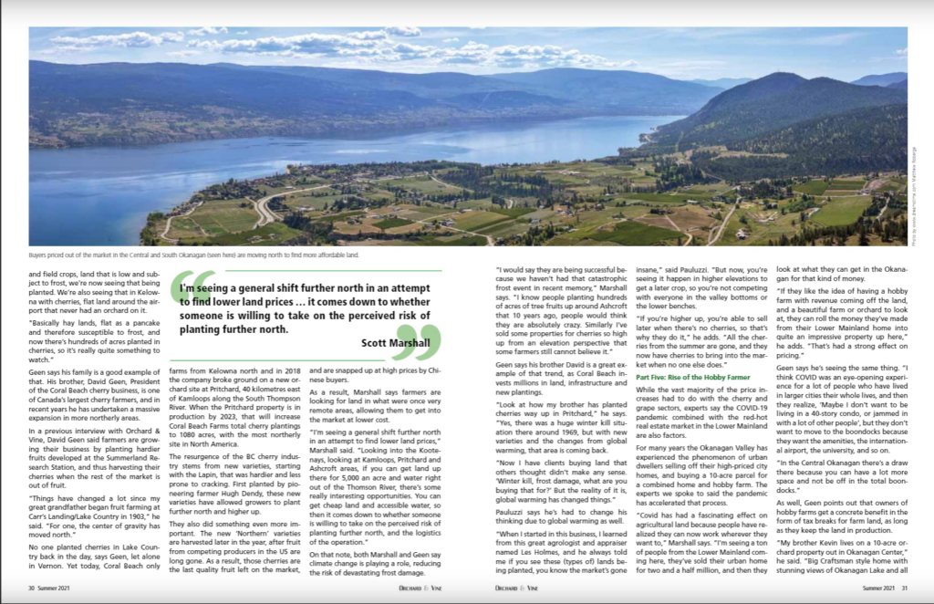 Learn about BC’s Agricultural Land Rush and what Scott Marshall has to say on the topic in the latest issue of Orchard and Vine.